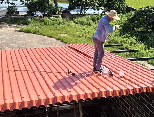 • 一般厂家使用三年多树脂瓦,开裂严重漏水,维修费用大