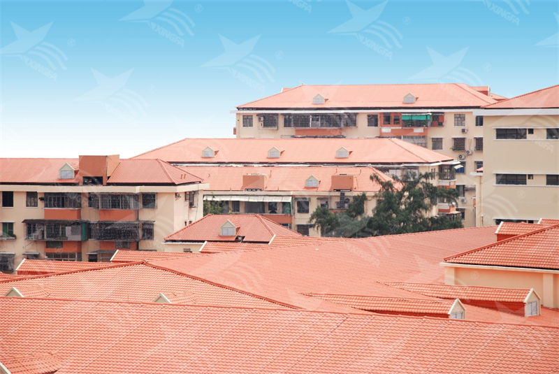 2、防水隔热:合成树脂瓦具有出色的防水、防漏、隔热等特性,可有效改善屋顶漏水问题,提升了居民的生活质量。其防水效果不仅令顶层住户受益,同时也保护了房屋结构,延长了建筑的使用寿命。