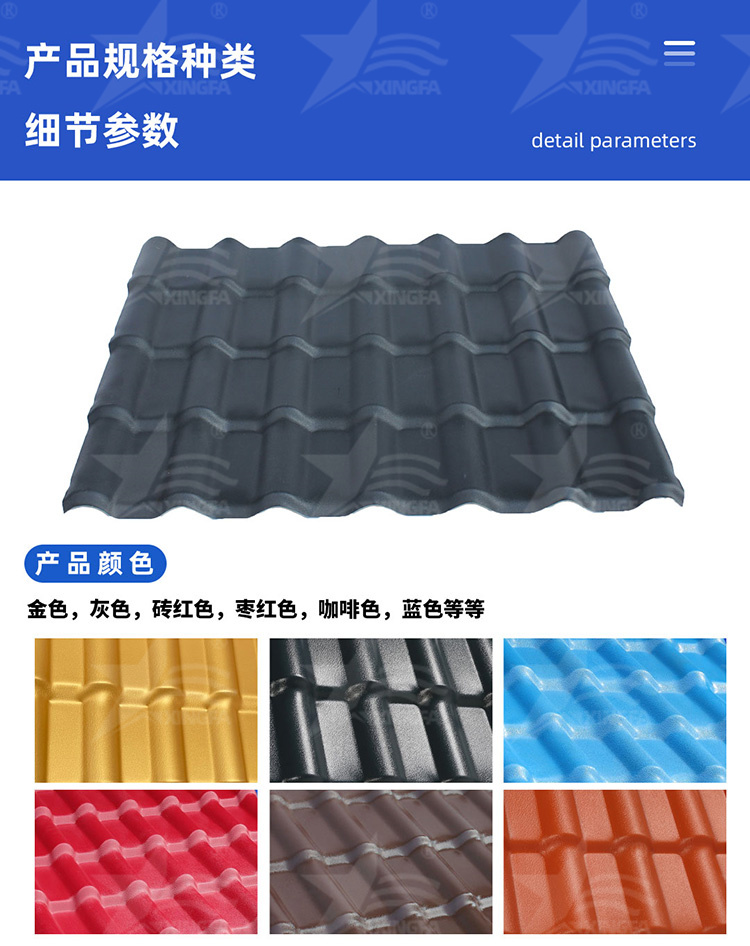 原材质:优质的树脂瓦应选用具有良好耐候性的树脂作为原料。