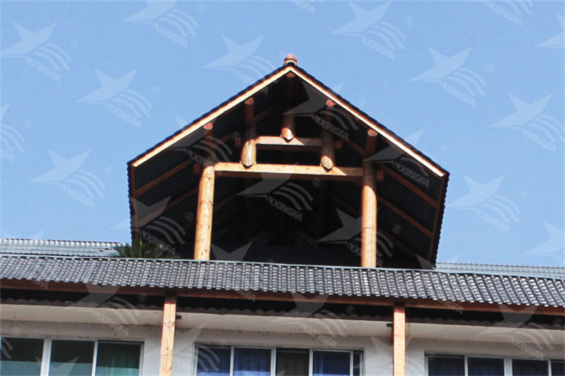 在安装过程中,使用自攻螺钉固定瓦片,使其牢固不脱落。树脂瓦在使用期间无需维护和维修,能够抵抗12级强风、抗冰雹,并且绝缘不导电。